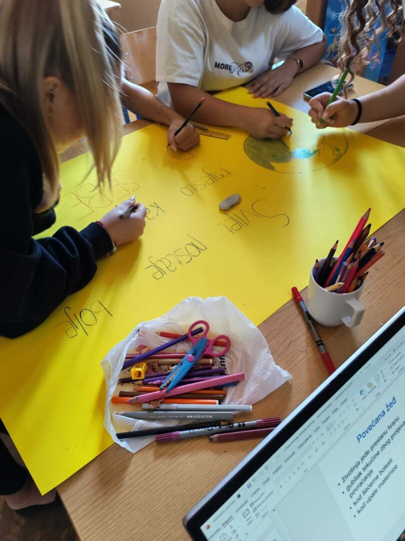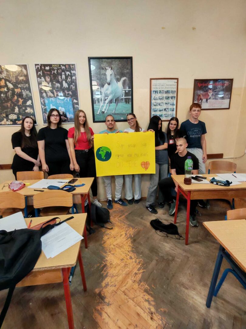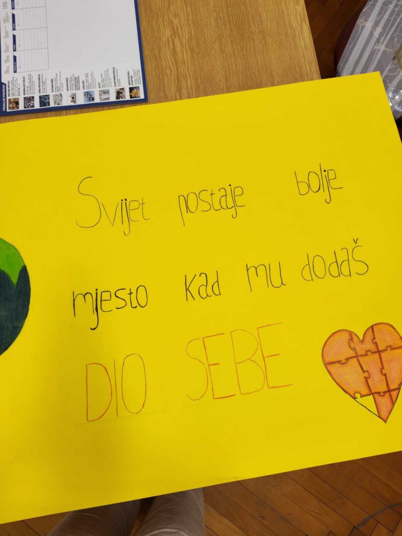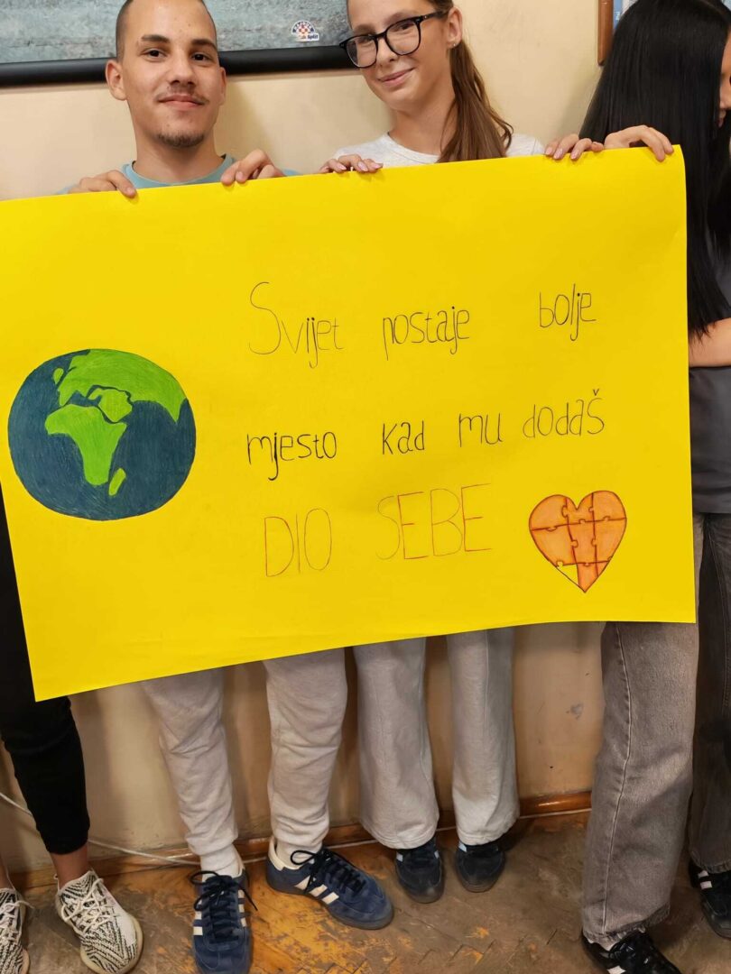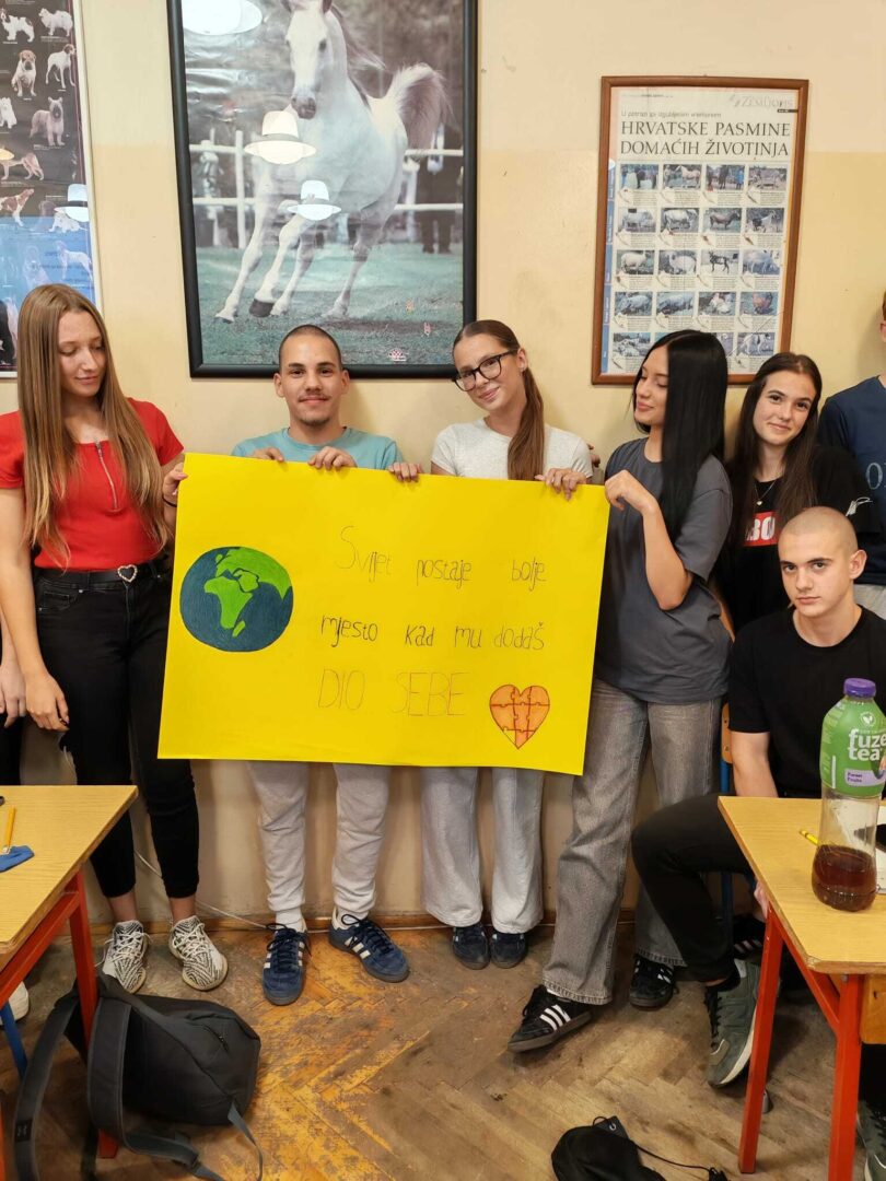 Vrijedne ruke učenika drugog i četvrtog razreda smjera veterinarski tehničar su osmislile plakat sa slikama i porukom da „svijet postaje bolje mjesto kad mu dodaš dio sebe“.