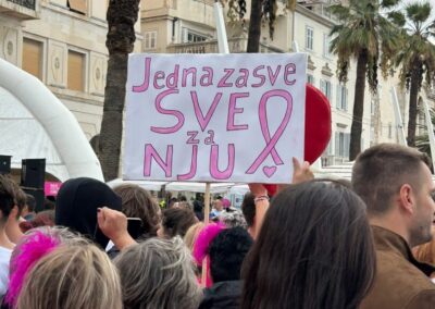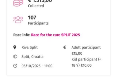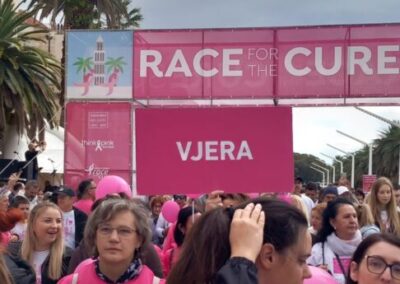 Usprkos oblačnom i vjetrovitom vremenu, rekordan broj ljudi odazvao se ovogodišnjoj humanitarnoj utrci Race for the cure koja se održala 5. 10. na splitskoj Rivi. Organizatori događaja iz Županijske lige protiv raka Split iznijeli su podatke o rekordnom broju sudionika – 5300 i prikupljenih preko 74 000 eura koji će biti usmjereni na kupnju magnetne rezonance za KBC Split, namijenjene prvenstveno onkološkim bolesnicima.
