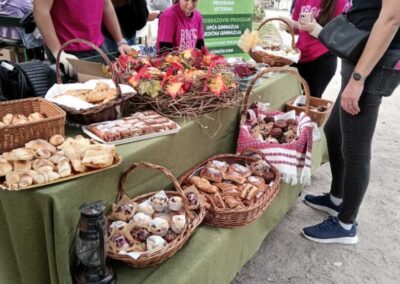 Na štandu naše škole i ove su se godine našli pekarski proizvodi i kolači koje su pripremili roditelji, učenici i djelatnici gimnazije i učeničkog doma.
