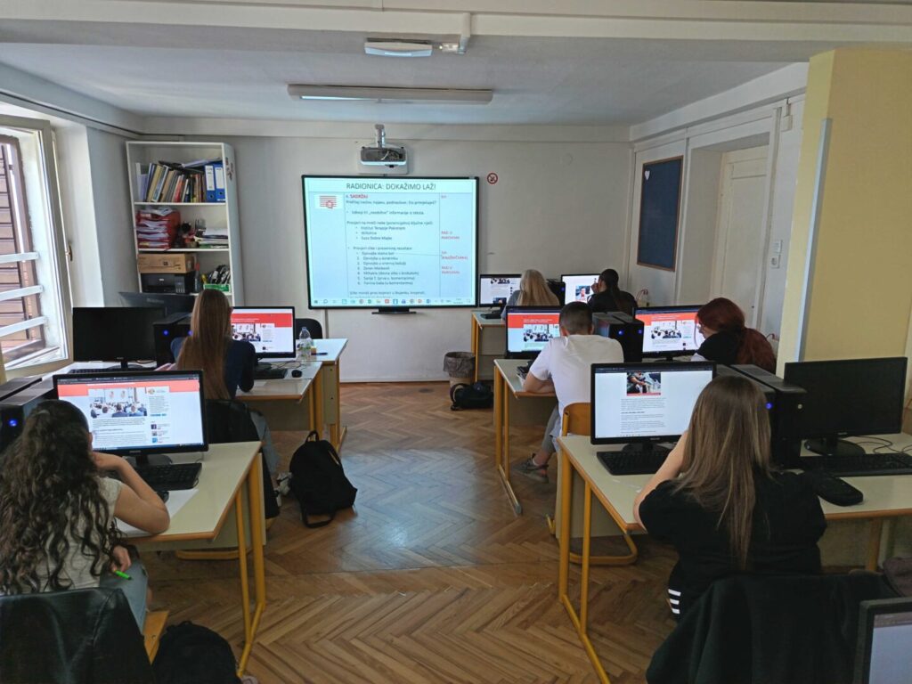Razgovarali smo o značaju i ulozi medija i medijske pismenosti te analizirali primjere lažnih informacija koje susrećemo u digitalnim medijima. Učenici su u samostalnom radu detaljno proučili predloženi članak iz područja zdravlja. Provjerom činjenica navedenih u tekstu i provjerom fotografija iz članka (uz uporabu online alata Google Lens i TinEye) dokazali su lažnost prezentiranih informacija te donijeli zaključak o manipulativnoj (reklamnoj) namijeni članka.