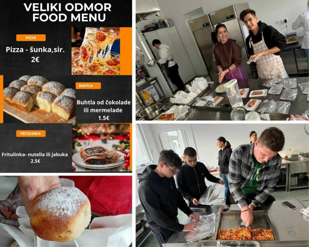 Naši maturanti su se odlučili temeljito i na vrijeme pripremiti za predstojeću Maturalnu zabavu. “Sezonu” su otvorili učenici 4. b razreda pod mentorstvom prof. Lelas koji su se na praktičnoj nastavi prihvatili kuhače te nam za odmor pripremili marendu za svačiji džep. Na meniju su se našle buhtle, pizzete, fritulinke,… koje su za tren oka našle svoje kupce.