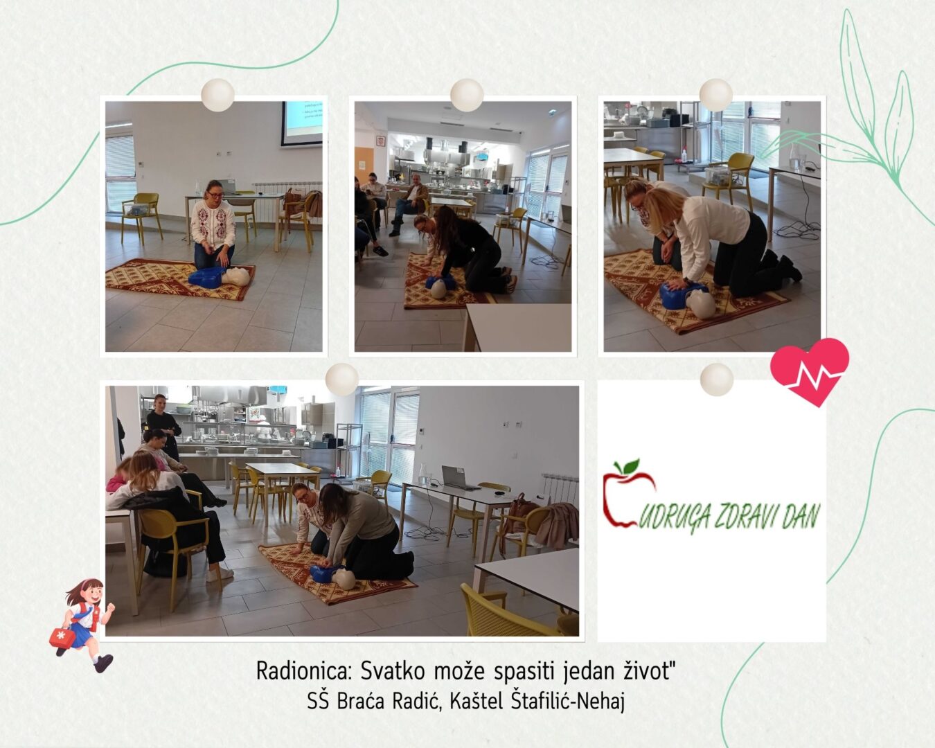 U petak, 21.11., u prostoru restorana našeg učeničkog doma, doktorica Tanja Ilić Begović, internistica KBC-a Firule i članica udruge Zdravi dan, održala je tri radionice pod nazivom “Svatko može spasiti jedan život”.